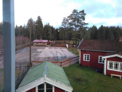Vår ridbana är 20 x 40 meter, sånär som på ett hörn där stugan står i vägen. Underlaget är stenmjöl.